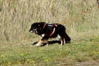 Enya suchtDer Hund lernt von Anfang an ruhig und konzentriert der Spur, nur mit Hilfe seines Geruchssinnes, zu folgen. Er kann nicht sehen, wie sich die Versteckperson entfernt, wird weder angereizt noch gelockt, um Stress fördernde Aufregung und "Hochfahren" des Hundes und ein Arbeiten auf Sicht zu verhindern.